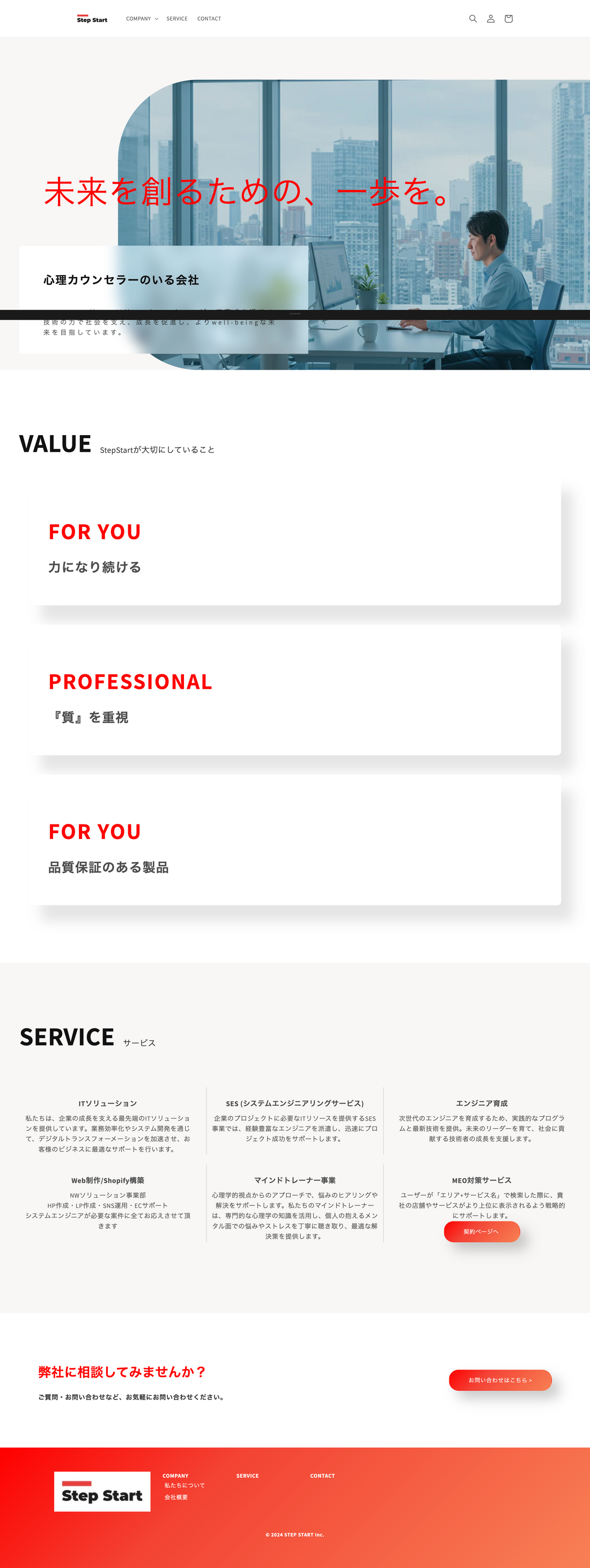 StepStert 2025年8月10日 サイト名 StepStart ジャンル MEO / SES / Shopify / エンジニア育成 / マインドトレーナー事業 説明 こちらのサイトはShopifyで作成しています。 IT企業 / サービスを販売するサイトになります。 サイトURL https://step-start.myshopify.com/ 地域 福岡 Share Share リンク 共有を閉じる リンクをコピー ブログに戻る